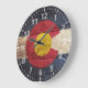 Colorado State Flag on Old Wood Grain Large Clock
