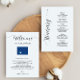 This modern and elegant card is the perfect addition to your hotel welcome bags. Enter the main events and a customized note to help your guests navigate the weekend. The size allows you to enter all the information you need. Everything in this card is editable. To change colors or move elements, click personalize and then "edit using the design tool." Select the element you wish to edit, then use the tools to make the changes.