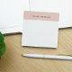 Elegant square notes feature your name and/or business name in classic black lettering on a colorblock band of pale blush pink.