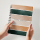 This personalized colorblock notebook features bold, hand-painted watercolor stripes in earthy shades of forest green, terracotta, taupe, and soft beige—offering a natural, rustic charm with a modern twist. The centered custom name in minimalist black font adds a sleek personal touch. Perfect for journaling, sketching, or note-taking, this notebook is a stylish companion for creatives, students, and nature lovers alike.