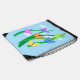 Drawstring bag with my vector design of six butterflies of purple, green, blue, orange, pink and yellow on blades of grass under a blue sky with puffy white clouds.