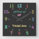 Customize a fun analog chalkboard style clock with bright colored numbers and dots and a cute cat for the office of a principal, counselor, coach, pediatrician, nurse or parent! If you want different wording or a different animal, send a note and I'll create another clock style!