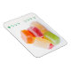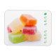 Photograph of a group of jelly square gummy sweets of several flavors: orange, melon, strawberry, mint and red, yellow, orange and green colors. Children will love it.