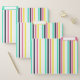 Keep your documents organized with these colorful file folders. They have vertical stripes in various colors, including turquoise, white, pink, purple, yellow, black, and more. Each folder has five repeated stripes, making them both stylish and practical.