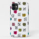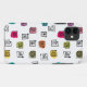 This phone case has a mid-century modern design of scattered mazes, some with colored blobs under them.