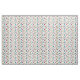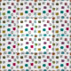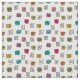 This fabric has a mid-century modern design of scattered mazes, some with colored blobs under them.