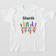 This is a fun T-shirt for a boy going to 3rd Grade. Your little boy will simply love wearing this colorful T-shirt on his first day of 3rd Grade. To make the T-shirt even more special, it can be personalized with your boy's name on the front. The design consists of seven colored pencils at different angles next to each other and the word "Third Grade" with each letter in different colors, across the middle of the pencils.
