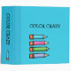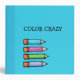 Illustration of four colored pencils, in blue, green, pink and lavender. Also matches the: