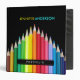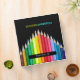 Customizable binder for artists, graphic designers, illustrators or other visual art related fields with rainbow colored pencils on black.