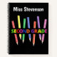 Start out the new school year with this Second Grade notebook which can both be used by teachers and students. The design consists of 7 different colored pencils at different angles next to each other with the word "Second Grade" across them. This note book can be personalized by changing the name on it, and would make a great back-to-school gift.