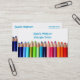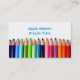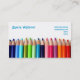 Fun business card with different colored pencils and a charming, blue font. Great for a tutor or teacher.