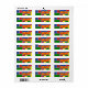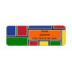 These return address labels have a Bauhaus design of rectangles formed with gray lines and filled with red, yellow, orange, blue, and green on a field of black.