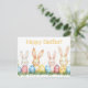 Colored watercolor Postcard with Easter Bunny