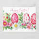 Colored watercolor postcard with Easter eggs