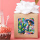Vibrant color art featuring a beautiful Mexican woman surrounded by cacti.