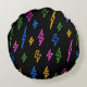 Colorful 80's Retro Neon Lightning Pattern Round Pillow
