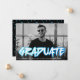 Trendy graduation announcement featuring the graduate's horizontal photo with "Graduate" displayed in blue 90's-style lettering. Personalize the front of the bold graduation announcements by adding the graduate's name, school, and graduation year. The back of the announcement features a blue gradient confetti pattern.