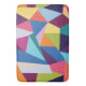 This bath mat features an abstract bold and colorful design of geometric shapes. A perfect way to brighten up your bathroom.
