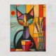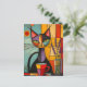 Colorful Abstract Cubist Cat & Coffee Postcard