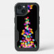 Safeguard your Google Pixel with a tough OtterBox case featuring pink, red, orange, blue, green, and yellow dots streaming out of the circle on the back of the case. The abstract dots are bokeh created from colorful lights on a black background.