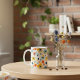 Enjoy your favorite drink with a splash of color and style. This modern abstract floral pattern features bold watercolor-inspired shapes and vibrant flowers, creating a cheerful and eye-catching design. Perfect for brightening your mornings or adding a fun touch to your desk.