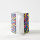 A bold and energetic mug design filled with vibrant abstract curves and playful flowing lines. The rich mix of bright colors on a deep background creates a joyful rhythm, perfect for creative minds and lovers of modern art-inspired drinkware.