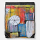 Vivid colors mix with abstract shapes, creating an energetic composition. Sharp lines and bold blocks of color intersect, evoking a sense of dynamic movement and contrast.