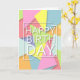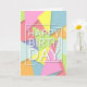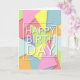 Send birthday greetings. Colorful abstract design in bright pastels with birthday hats on the inside.