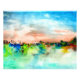A print that depicts a beautiful abstract watercolor painting of blue, green, and peach tones.
