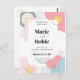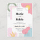 The design features a vibrant and colorful abstract background, which makes a statement and sets the tone for a lively and joyful celebration. Perfect for couples looking to add a touch of fun and modernity to their wedding festivities. The text is in clean and elegant fonts, which contrasts well with the playful background, making the invitation easy to read while still being visually appealing.