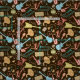 Colorful assorted musical instruments seamless pattern over black background. Beige blue and yellow