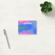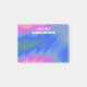 These custom post-it notes feature a colorful pastel abstract design that has hues of pink, blue, orange, and green. At the top of the pad, there is the personalized text which you can customize with your information.