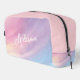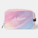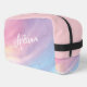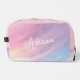 Introducing PIxeliaDesigns' Rainbow Pastel Dopp Kit Bag, featuring a Colorful Pastel Abstract Rainbow Pattern in a soft, pink purple hue that brings a touch of whimsy to your daily routine. Perfect for dance, gym, travel, and outdoor activities, this versatile bag combines functionality with a girly rainbow abstract pattern, making it a fashionable accessory for those on the go. Its colorful pastel design not only stands out but also inspires joy and creativity in your adventures. Adding a personal touch, this Dopp Kit Bag offers a customization option to include your name, making it uniquely yours and easy to spot.