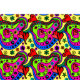 Colorful abstract shapes psychedelic art fabric for arts and crafts.