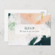 This colorful abstract song request RSVP postcard is perfect for your unique modern boho wedding. Hand-painted with textured brush marks of dark emerald green, peach, and mustard, all overlayed with a minimalist transparent square, it's sure to give your occasion a simple yet rustic bohemian feel.
