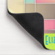 Personalize with a name on a light yellow green backdrop. The top portion of the mousepad is an abstract illustration with large and small squares and rectangles with intersecting lines. This creative design has contrasting pastels and brights in the colors of cream, rose pink, lime green, light brown and bright blue.