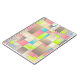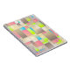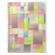 An abstract illustration with large and small squares and rectangles with intersecting lines. This creative design has contrasting pastels and brights in the colors of cream, rose pink, lime green, light brown and bright blue.