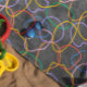 Colorful abstract wavy line in a seamless pattern on a dark gray background.