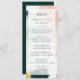 This colorful abstract wedding dinner menu is perfect for your unique modern boho wedding. Hand-painted with textured brush marks of dark emerald green, peach, and mustard, all overlayed with a minimalist transparent square, it's sure to give your occasion a simple yet rustic bohemian feel.