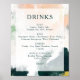 This colorful abstract wedding drinks menu sign is perfect for your unique modern boho wedding. Hand-painted with textured brush marks of dark emerald green, peach, and mustard, all overlayed with a minimalist transparent square, it's sure to give your occasion a simple yet rustic bohemian feel.