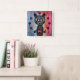Colorful Abstract Yellow Eyed Cat Square Wall Clock