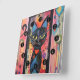 Colorful Abstract Yellow Eyed Cat Square Wall Clock