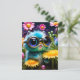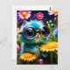 A cute kitten in glasses sits in a field of colorful flowers fantasy AI generated art
