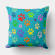 Colorful and Cute Pet Paw Prints Pattern Throw Pillow