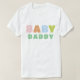 Celebrate the baby and parents to be at a shower with colorful and fun "baby daddy" shirt with colors of pink, orange, green, mint, and sky blue. The father to be can wear this cute t-shirt for photo shoots, at a couple's shower and for any occassion he or the baby mama dictates.