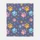 Colorful Animal Paw Prints Pattern Fleece Blanket