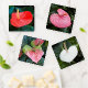 For tropical plant fans! Protect your tabletops and fine furniture from drips and stains with this set of 4, square, acrylic beverage coasters that feature photo images of colorful Anthurium flowers, commonly known as Flamingo Flower, Laceleaf, and Tailflower. A lovely, floral design!