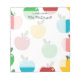 A note from teacher notepad with a background of colorful polished apples in green, red, yellow, pink, and blue.