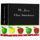 Great looking teacher's class room binder done in black, white, yellow, green, and red. White polka dots on red edges the bottom of the binder, with a white band of colorful apples above it. The upper half of the binder is done in black, with white customizable text. Perfect for teachers and tutors. Customize to add any text you want.