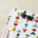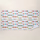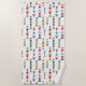 This beach towel has a mid-century modern design of arrows made from black lines and different shapes in retro colors of red, blue, green, orange, gold, and grey on a field of white. Want the same design with different colors? Message me.